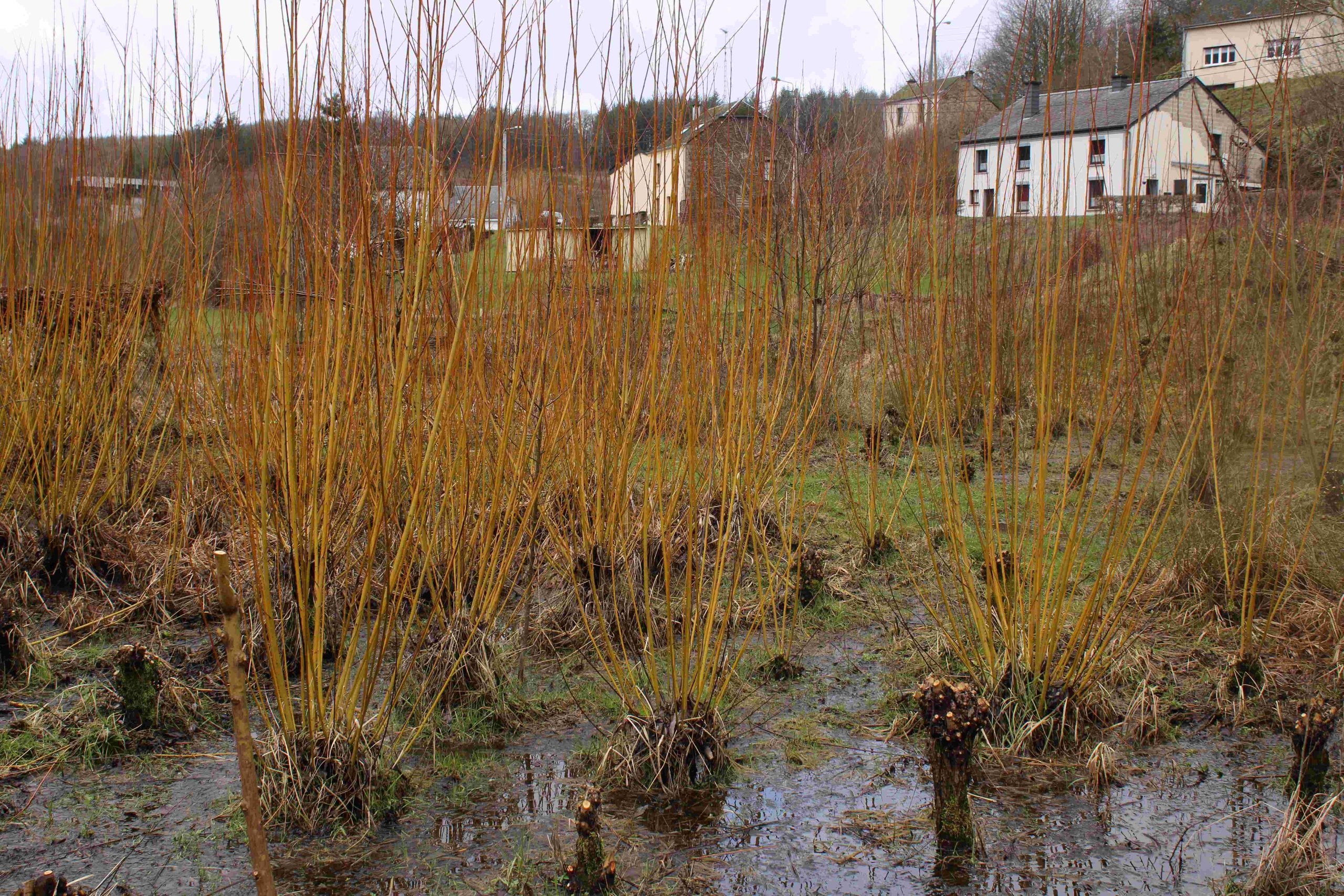 Trois variétés de saule ont été plantées sur le site : 180 plançons de 1m de hauteur sont taillés chaque année en saule têtard :