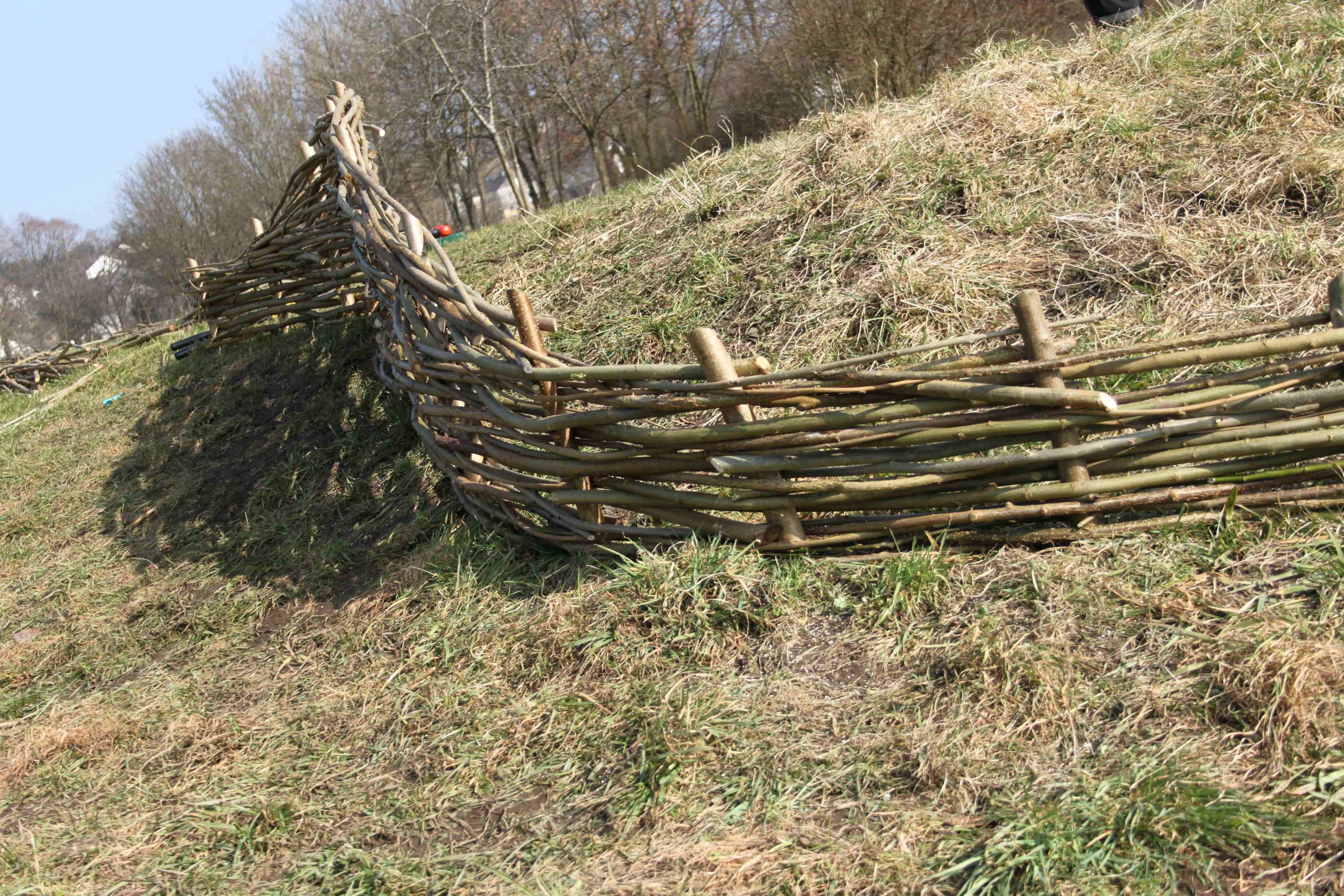 Une haie de bourdaine, noisetier et cornouiller sanguin complète les plantations de saule; ces trois essences sont aussi utilisées en architecture végétale.