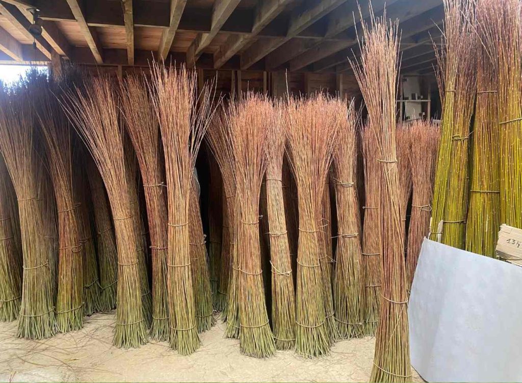 Contrairement à l’osier brut, qui conserve son écorce et sa teinte naturelle plus sombre, l’osier blanc est écorcé et présente une couleur claire et lumineuse.